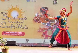 सूरजकुंड, 10 फरवरी। फरीदाबाद अंतरराष्ट्रीय शिल्प मेला के आज 10वें दिन मुख्य चौपाल पर विदेशी कलाकारों के साथ-साथ देश के विभिन्न राज्यों से आए कलाकार अपनी बेहतरीन कला एवं संस्कृति को सुरीली आवाज व नृत्य कला की प्रस्तुतियों के माध्यम से रंग बरसा रहे हैं। एवं मुख्य चौपाल पर एकत्रित हुए दर्शकों का भरपूर मनोरंजन कर रहे हैं।